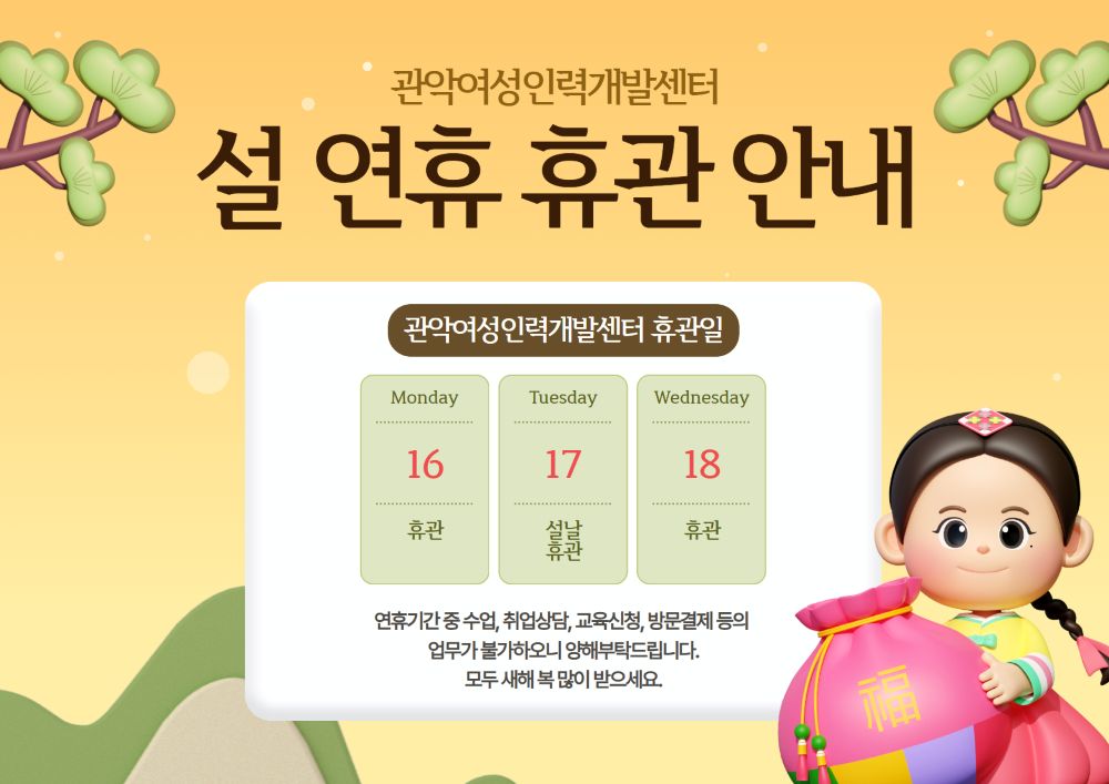 [휴관안내] 2026 설연휴 휴관안내